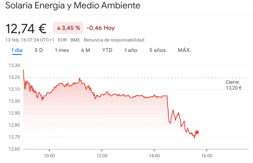 Gráfico de las cotizaciones de las acciones Solaria del Ibex 35 hoy