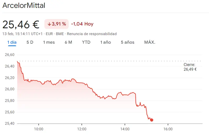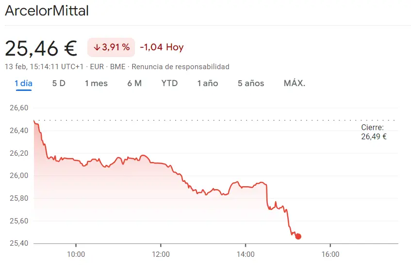 Gráfico de las cotizaciones de las acciones ArcelorMittal del índice Ibex 35 hoy