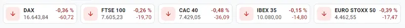 Ha sido una de las peores sesiones del índice DAX 30, EuroStoxx 50 y CAC 40