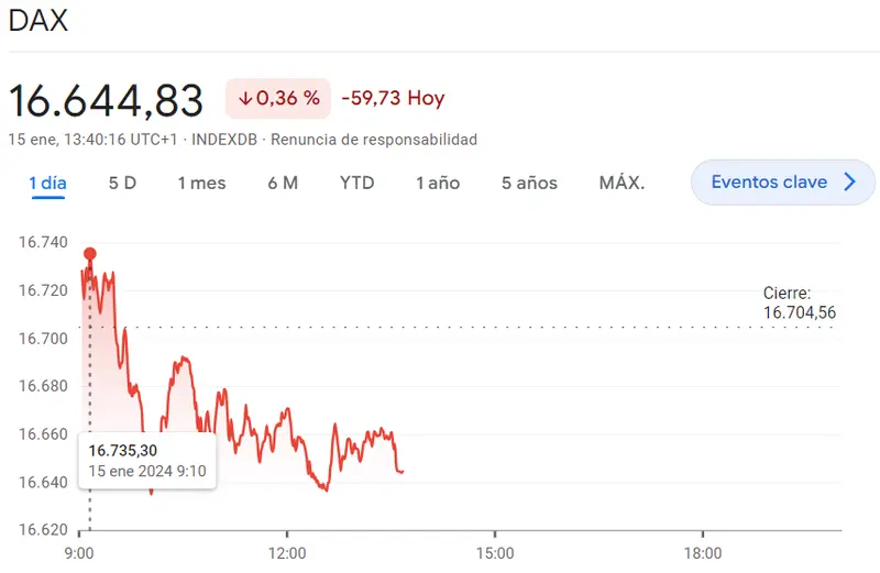 Gráfico de las cotizaciones del índice DAX 30 en un espacio de tiempo de un día