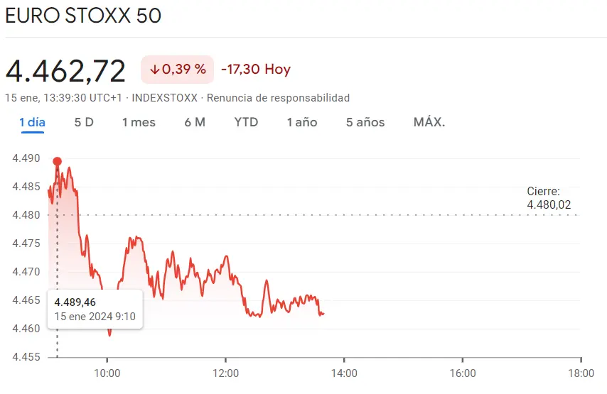 A lo largo de la sesión de hoy, día 15 de enero del año 2024, el índice CAC 40 mostró una resistencia sorprendente al descender apenas un 0.48% desde sus mínimos, reflejando una capacidad de rebote inesperada en medio de las condiciones adversas del mercado. Mientras tanto, el índice EuroStoxx 50 experimentó fuertes caídas, perdiendo significativamente con una baja de 17.30 puntos, evidenciando la presión vendedora que prevaleció en la sesión. Por su parte, el índice DAX 30 vivió una de sus peores jornadas, enfrentándose a duras caídas que reflejan la vulnerabilidad de los mercados en un contexto económico y financiero desafiante. La diversidad de comportamientos entre estos índices principales resalta la complejidad y la incertidumbre que caracterizan a los mercados en la actualidad.