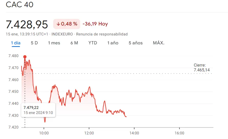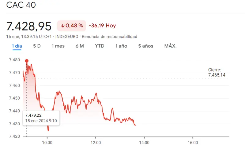 Gráfico de las cotizaciones del índice CAC 40 en un espacio de tiempo de un día