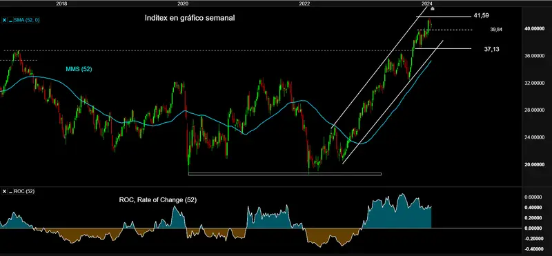 Inditex: publica resultados con múltiplos ajustados y cerca de la parte alta de canal alcista