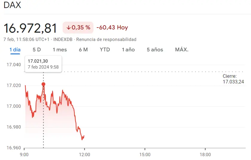Gráfico de las cotizaciones del índice dax 30 en un espacio de tiempo de un día