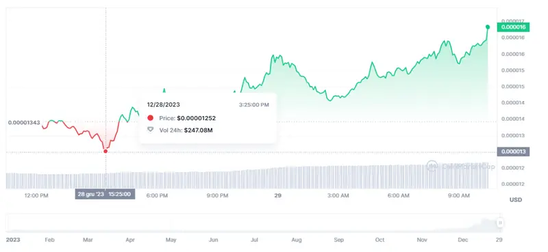 Gráfico de las cotizaciones de la criptomoneda Bonk del mercado de criptomonedas de estos momentos