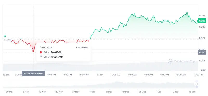 Gráfico de las cotizaciones de la criptomoneda WOO en un espacio de tiempo de un día