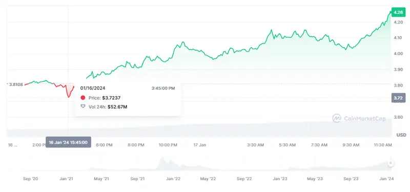 La mañan de hoy ha atraído muchas de las subidas de las criptomonedas de hoy. En este momento, una de las criptomonedas más fuertes es la de Render con sus subidas de un porcentaje de un 11.58%, elevándose las cotizaciones de RNDR a los valores actuales de unos 4.26 dólares (USD) habiendo partido de las cotizaciones de unos mínimos de unos 3.7237 dólares. Si nos fijamos en las últimas subidas, las más llamativas son las de estas últimas 24 horas frente a las de la última hora de apenas un 2.66%.