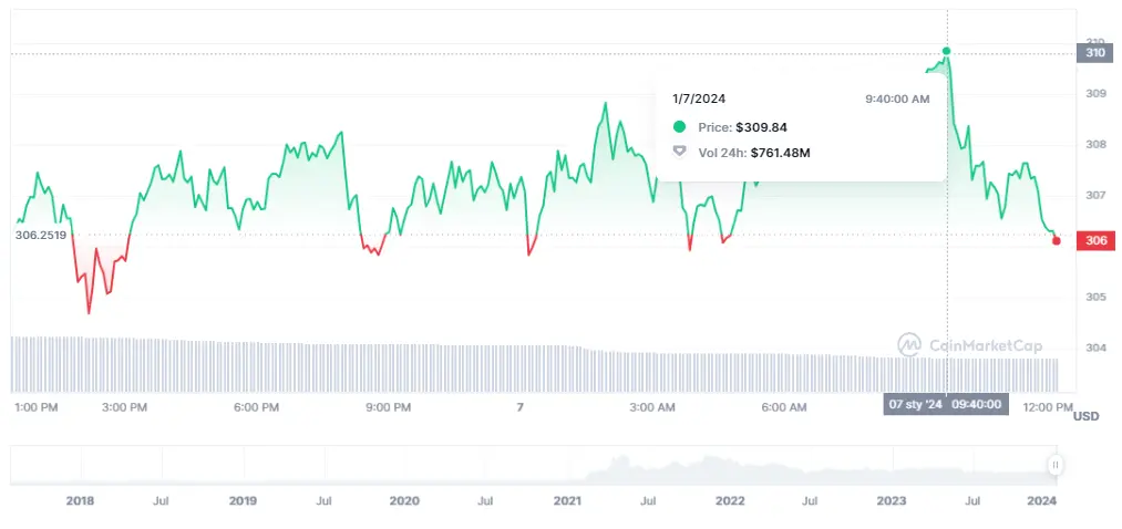 Las cotizaciones de la criptomoneda BNB sufren unas caídas que se abalanzan fuertemente sobre las caídas con las que el valor en cuestión podría encontrarse con cotizaciones mucho más graves. Ahora mismo las cotizaciones de la criptomoneda BNB caen un valor de hasta un 0.33%, cayendo en los últimos 7 días unas cotizaciones mucho más bajistas, con una desescalada de un 3.78%, derrumbándose a cotizaciones muy flojas como las actuales de 306 dólares. En cuanto a las cotizaciones alcistas, las hemos llegado a encontrar en las últimas 24 horas con niveles de un 0.2%.