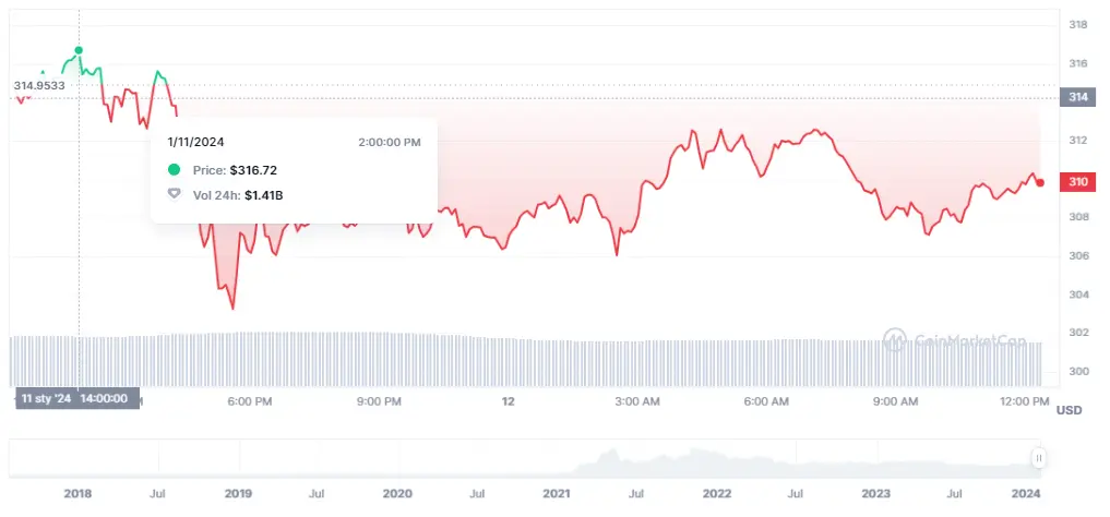 Las cotizaciones de la criptomoneda BNB una vez más muestran un panorama de perdidas de unos valores bruscos y confusos, alterando el mercado crypto una ve más. El precio de BNB de este instante sigue una subida muy floja de apenas un 0.15%. Después de encontrar dichas subidas, el precio de BNB cae un porcentaje muy grande, con unas caídas que encontramos en un espacio de tiempo mucho más largo, con caídas de un 1.28% de las últimas 24 horas y unas caídas de un 2.71% de los últimos 7 días.