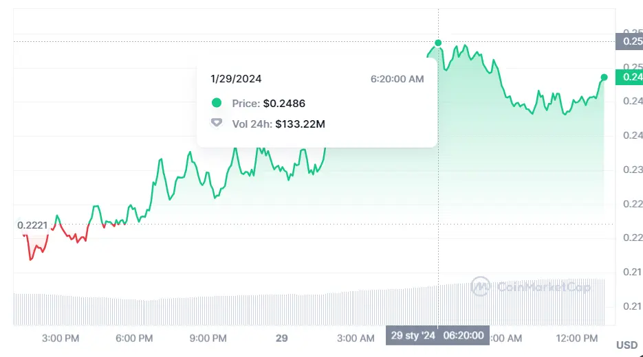 El precio de Conflux es un ejemplo más de la criptomoneda más volátil del mercado de criptomonedas. Estos momentos podrían suponer algunas que otras subidas, separadas por completo de lo que hemos visto en las cotizaciones bajistas. Estos momentos son bastante duros para el precio de la criptomoneda. Estamos encontrando unas pendientes al alza de un 8.75% de las últimas 24 horas. En comparación a ello, los valores de la última hora han subido un 1.54%, mientras que las subidas de los últimos 7 días han sido de un 35.70%. Ahora mismo Conflux cotiza 0.24 dólares frente a las cotizaciones máximas de hasta unos 0.25 dólares.