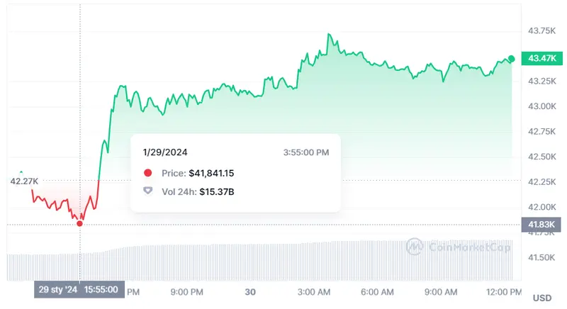 Lo que no nos podíamos esperar en el cambio Bitcoin (BTCUSD) eran unas subidas repentinas y tan fuertes como las que hemos encontrado en la mañana de hoy, y sobre todo tras haber marcado las cotizaciones minimas tan reducidas, de apenas unos valores de 41.83 mil dolares. En estos momentos Bitcoin cotiza unos 43.47 mil dolares, subiendo unos valores de un 2.73% en las ultimas horas, con un crecimiento de un 0.27% en la ultima hora, elevandose pronunciadamente con sus máximos en incluso unos 43.75 mil dólares.