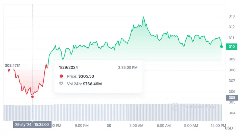 Los momentos mas avanzados de las cotizaciones de BNB estan cediendo un poco el paso aunque sin volver a rozar unas cotizaciones mínimas que podrian peligrar para la criptomoneda en cuestión. Ahora mismo el precio de BNB está tomando su repunte en los valores mínimos de unos 305 dolares (USD), subiendo el precio de BNB hacia las cotizaciones de estos momentos de unos 310 dólares por criptomoneda. En contraste con lo que hemos visto hasta ahora en unos valores máximos de hasta unos 313 USD.