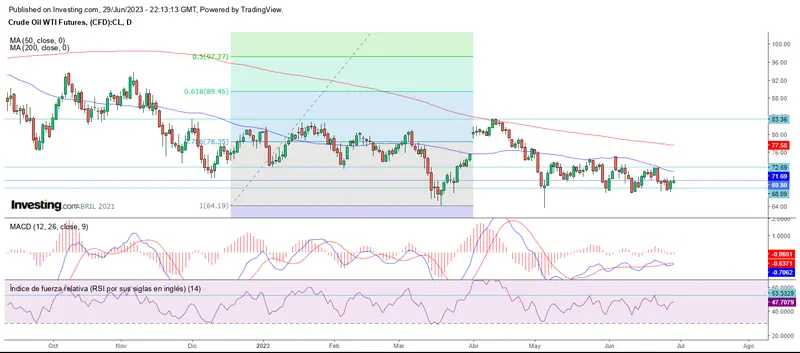 El crudo WTI vuelve a defender el soporte en los 68 dólares y se impulsa a fin de mes hasta los 69.78 dólares.