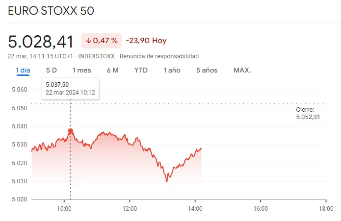 Gráfico de las cotizaciones del índice Euro Stoxx 50 hoy