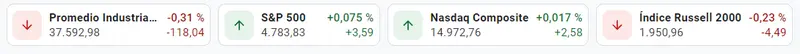Tablas con los datos de las cotizaciones de los demás índices norteamericanos de Wall Steet