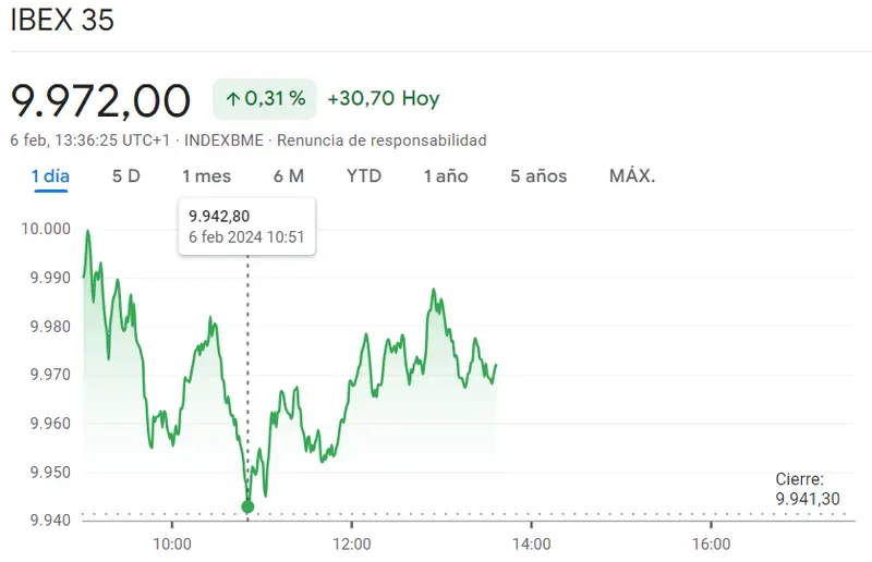 Hemos visto como el mercado español crece viéndose el índice Ibex 35 en unos valores mucho más marcados de lo que esperábamos observando las cotizaciones mínimas y las más bajas como las de unos 9942.8 puntos. El índice Ibex 35 ahora mismo cotiza unos 9972 puntos, encontrándose mucho más por encim de las cotizaciones que el índice Ibex 35 atravesaba en unos cierres de sesión bastante flojos, en apenas unos 9941.3 puntos. Nos fijamos también en los valores más fuertes de la sesión, es decir, los de los máximos de unos 10000 puntos.