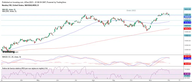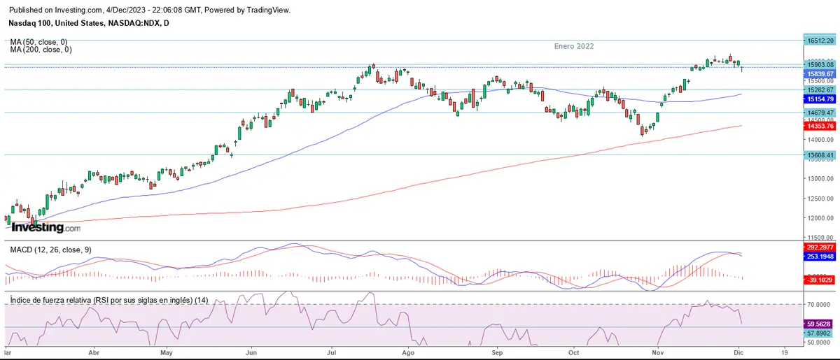 El Nasdaq ha vuelto a atravesar por debajo de la resistencia, cerrando la sesión en los 15.839 puntos.