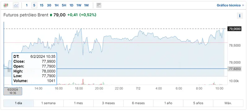 Los valores del petróleo crudo Brent están en medio de un progreso alcista que va camino directo a unas cotizaciones que en el mejor de los momento se topan con hasta unos 79 dólares (USD), recogiendo cada vez más subidas, partiendo el precio del petróleo Brent desde las cotizaciones más bajas de apenas unos 77.8203 dólares. En cuanto a otros datos de interés, hemos llegado a ver cierres de sesión en unos 77.99 dólares, con cotizaciones de apertura de la sesión de unos valores de 77.79 dólares.
