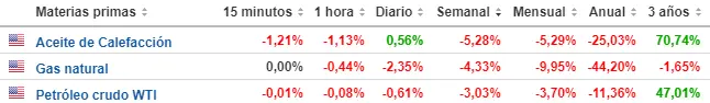 El mercado de las materias primas está siendo bastante perjudicado con lo que ha ido pasando en los últimos momentos con las caídas de muchos de los commodities conocidos por unas fuertes alzas. Ahora mismo el mercado se encuentra ante un panora de muchas dudas en activos muy volátiles en sus caídas como lo es el gas natural, el petróleo crudo WTI y el aceite de calefacción. El precio del aceite de calefacción en los mínimos anuales con cotizaciones pésimas del gas natural (-2.35%). El precio del petróleo crudo WTI cierra el año de la peor manera posible.