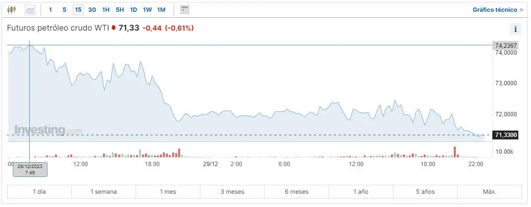 Gráfico de las cotizaciones del petróleo crudo WTI en un espacio de tiempo de un día