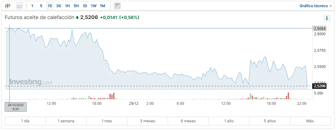 Gráfico de las cotizaciones del aceite de calefacción en un espacio de tiempo de un día