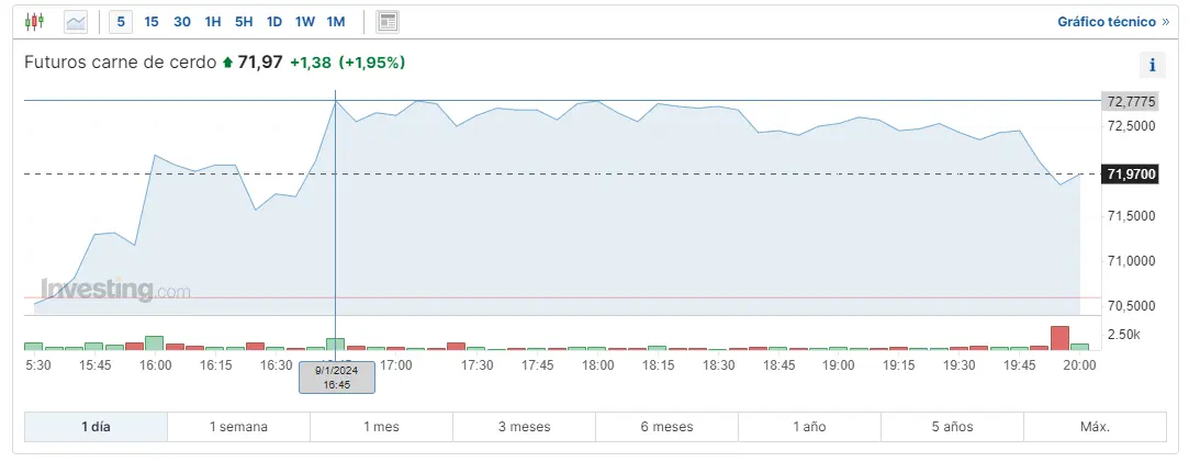 Gráfico de las cotizaciones de la carne de cerdo en un espacio de tiempo de un día