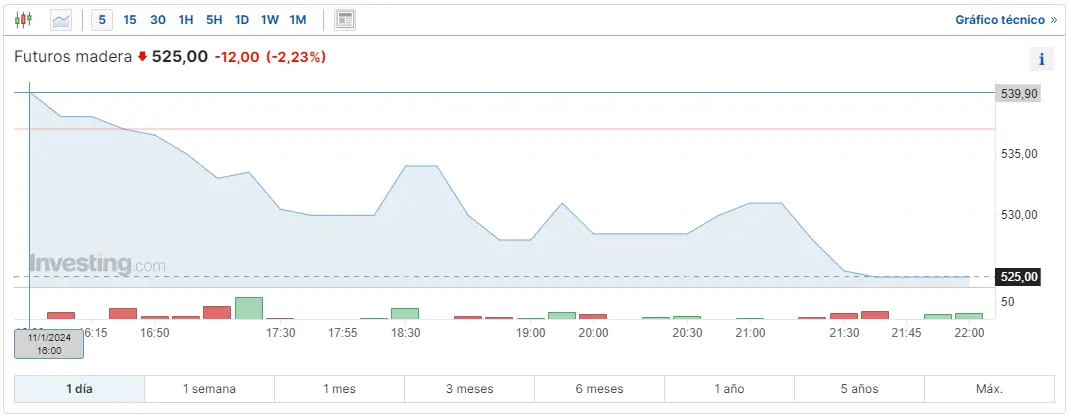 Gráfico de las cotizaciones de la madera en un espacio de tiempo de un día