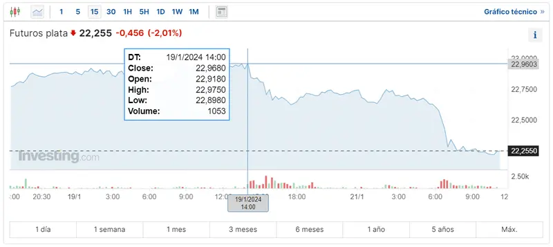 Gráfico de las cotizaciones de la plata en un espacio de tiempo de un día