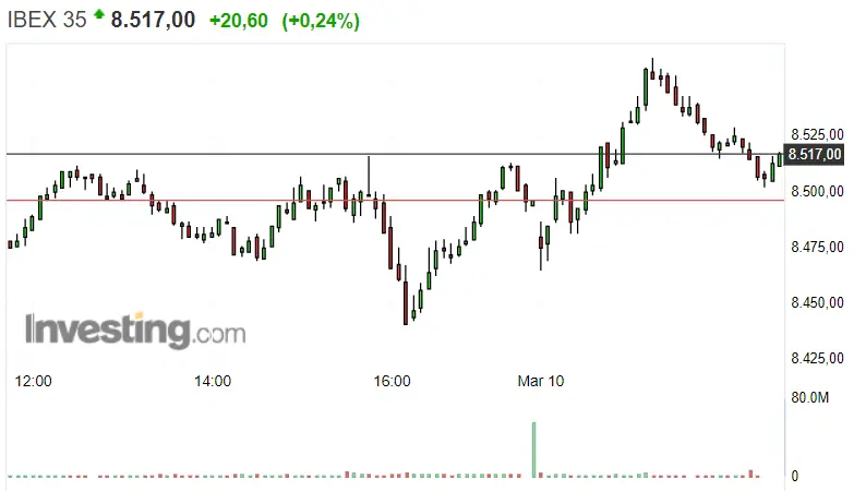 Gráfico del índice Ibex 35 en un espacio de tiempo de un día