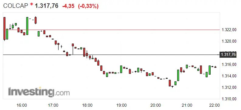 Gráfico del índice COLCAP en un espacio de tiempo de un día