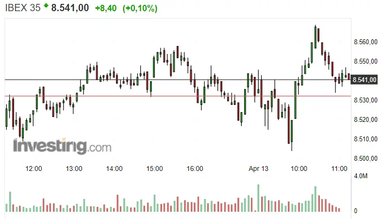 Gráfico del índice Ibex 35 en un espacio de tiempo de un día