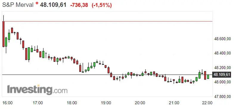 El índice argentino también se caracteriza por un tono rojo que nos da a entender que las últimas que predominan en él son las bajadas, actualmente de hasta 736.38 puntos, es decir; del 1.51%. ¿Cuáles son en tal caso las cotizaciones del momento actual? Nos vamos refiriendo a unos 48109.61 puntos en los que se mantiene el S&P Merval en el momento actual. Fijándonos en los niveles de resistencia y soporte de este concreto índice, veremos el nivel de resistencia en unos 48928.72 puntos, mientras que el nivel de soporte pertenece a unos 47978.68 puntos.
