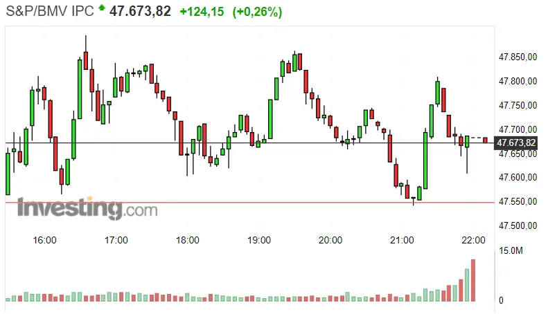 Vemos niveles de soporte y resistecia propios del índice mexicano S&P BMV IPC bastante dispersos. El nivel de resistencia lo vemos en 47896.36 puntos, mientras que el de soporte lo encontramos en 47544.12 puntos. Si nos fijamos en lo que está sucediendo en el momento actual, veremos unaa subida de 0.26% que asciende unos 124.15 puntos, dejando las cotizaciones de estos momentos en unos 47673.82 puntos. ¿Hasta qué nivel esperamos que suba la bolsa mexicana?