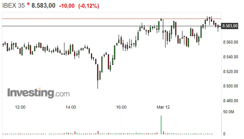Gráfico del índice Ibex 35 en un espacio de tiempo de un día