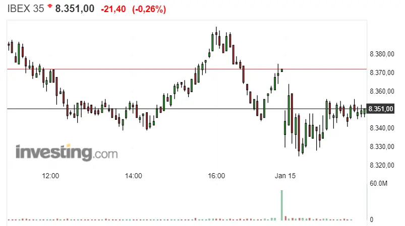 Gráfico del índice Ibex 35 en un espacio de tiempo de un día