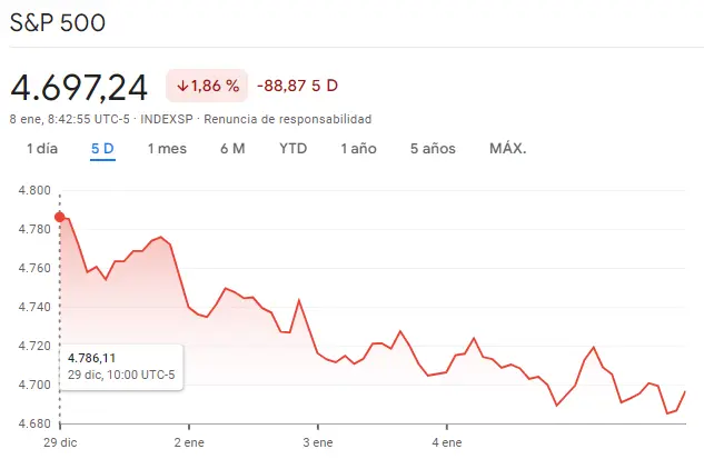El índice SP500 se encuentra ahora mismo bajando unos 88.87 puntos por el índice SP500 en lo súltimos días, bajando unos niveles que vienen reduciéndoe desde los valores de unos máximos de unos 4786.11 puntos frente a las cotizaciones más bajas que hemos llegado a encontrar en unos valores mínimos de apenas 4680 puntos. Lo que más espera el índice SP500 son unas caídas que podrán agravarse a lo largo de las próximas sesiones con unas cotizaciones que traerán muchas más tendencias bajistas.