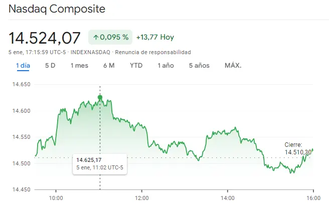 Ahora mismo el índice Nasdaq 100 se topa con unas subidas de unos 13.77 puntos subiendo desde unos niveles de los últimos cierres de sesión de valores de unos 14510.30 puntos. Lo que hemos llegado a ver a continuación ha sido el valor máximo de unos niveles de 14625.17 puntos, subiendo con gran fuerza. No obstante, las cotizaciones en estos momentos no tardan en caer hacia unos niveles que en sus mínimos se encuentran en apenas unos 14.475 puntos por el índice Nasdaq 100.