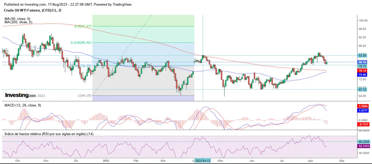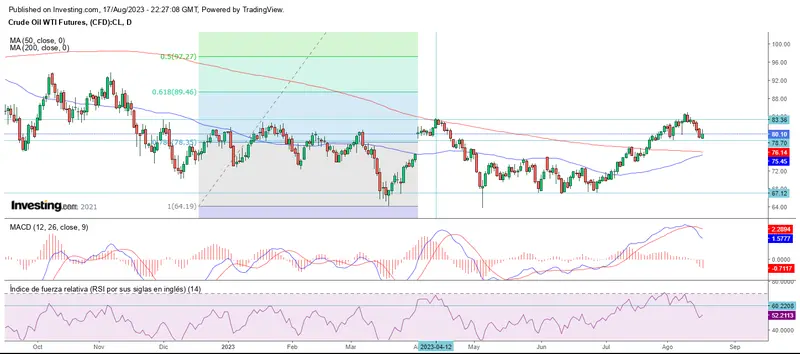 El crudo WTI nos deja un giro al alza en la última jornada de la semana, alcanzando los 80.11 dólares.