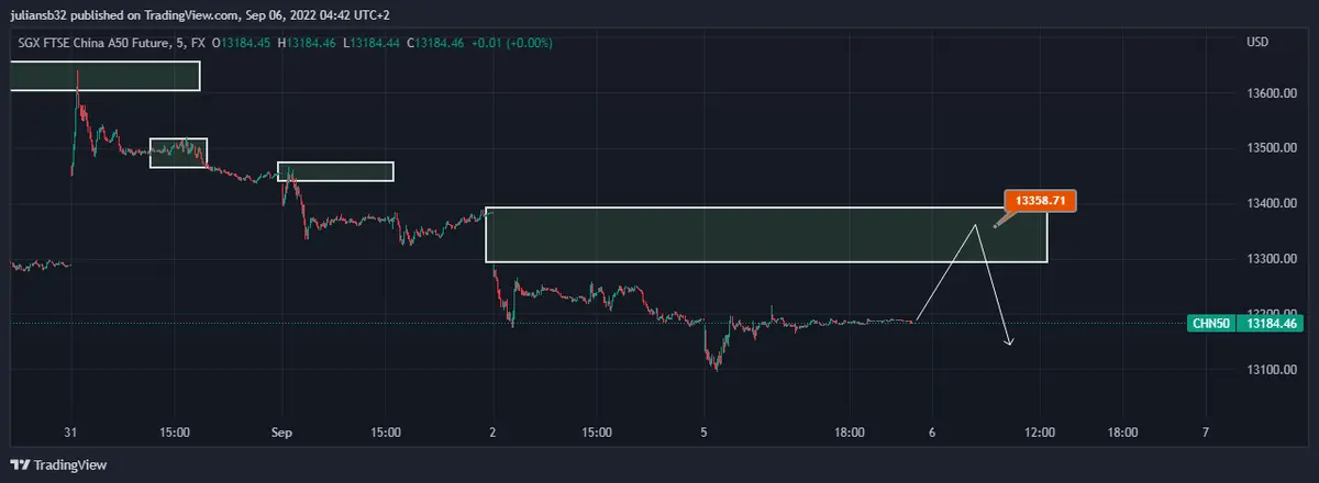 Gráfico del FTSE China A50 en temporalidad de 5 minutos fuente tradingview