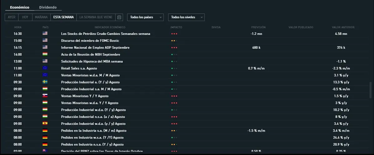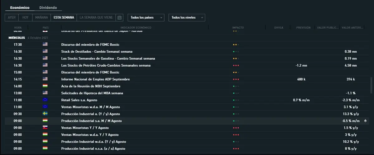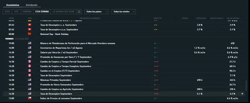 En el calendario económico para la semana nos esperan datos interesantes, el más llamativo vendrían a ser los datos de empleo del mes de septiembre que se publicarán este viernes en Estados Unidos, de salir un dato mejor de lo esperado podríamos estar ante el posible anuncio de reducción de compra de bonos por parte de la Reserva Federal, y posiblemente también anuncie la subida de tipos de interés para finales del próximo año o principios del 2023.