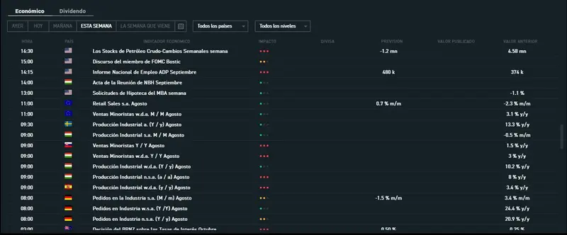 Por el lado de la comunidad Europea tenemos los datos de las ventas minoristas del mes de agosto que se publicarán el día miércoles, en el caso de que los datos presentados resulten mejor de lo esperado por el mercado, estaríamos también ante un posible anuncio de cambio de política monetaria por parte del Banco Central Europeo, sin olvidarnos de que el día martes tendremos los datos de inflación PPI del mes agosto en la Unión Eropea.