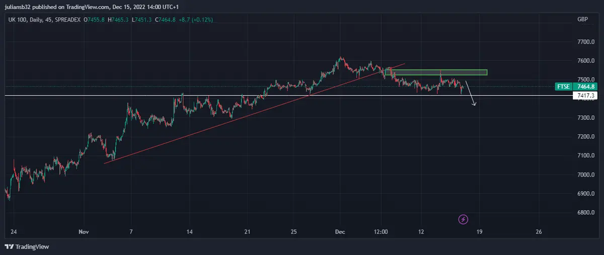 En FTSE 100 en las últimas semanas está en modo rally navideño, aunque los fundamentales no sean a favor, y se pueda opacar con subidas de tipos de interés. Descubre más sobre la situación actual del mercado. El Banco de Inglaterra decidió dejar los tipos de interés en el 3,50%, lo que puede generar, en el mediano plazo, efectos negativos en el consumo.