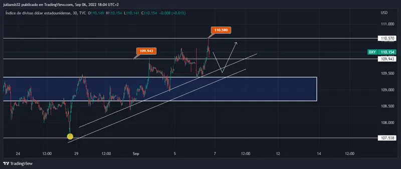 Los buenos datos deberían ejercer una presión en la FED para subir tipos de interés o si no les va ser muy difícil contener la inflación, por eso los especuladores en el corto plazo con este dato se van en compras y como se observa en el índice del dólar marca nuevos máximos para este año en la zona de los 110.580, donde encontró techo y ahora se ubica en los 110.160 lo que representa una variación positiva para la sesión del martes de 0.50%.
