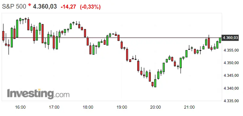 Como ya hemos leído en el título, algo pasa con el índice norteamericano y es que hace bien poco su trayectoria alcista se veía interrumpida por una repentina e intensa bajada. Como podemos comprobar en el gráfico de abajo, el índice de EEUU se encuentra en estos momentos en un descenso del 0.33%, es decir de unos 14.27 puntos, dejando las cotizaciones del momento actual en 4360.03 puntos. Si buscamos el nivel de soporte del índice S&P Lima General, lo veremos en 4340.54 puntos, mientras que el nivel de resistencia lo podemos encontrar en 4368.14 puntos.