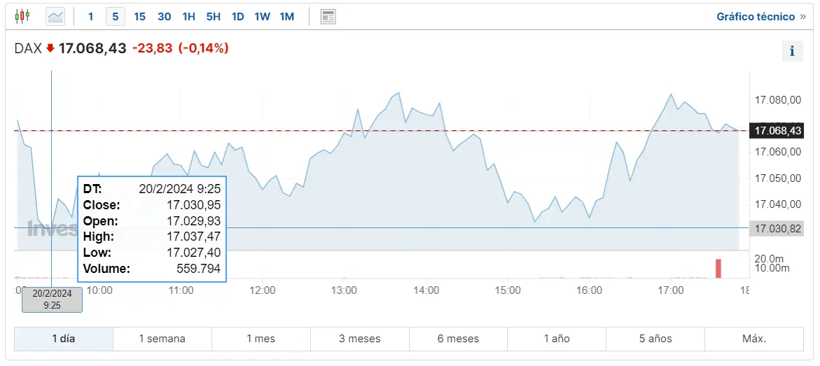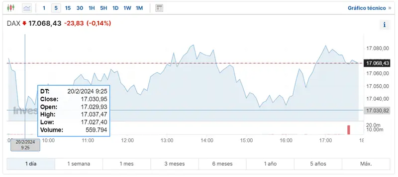 Gráfico de las cotizaciones del índice DAX 30 hoy