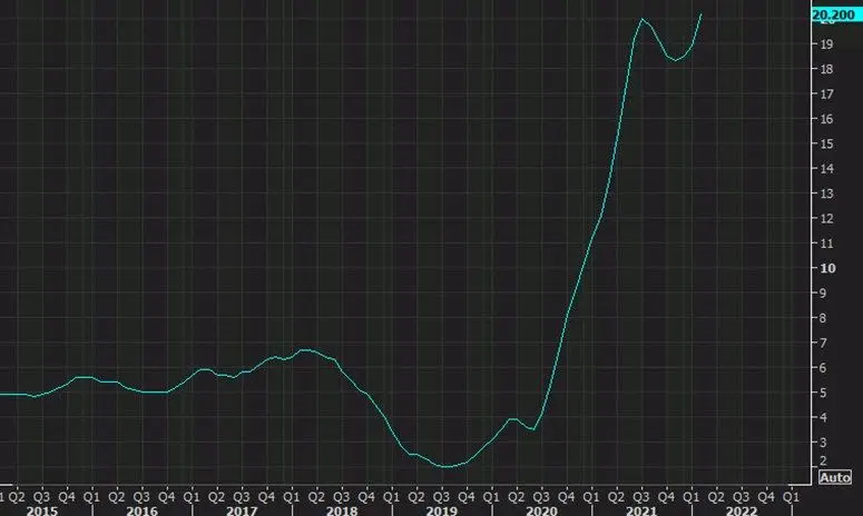 Índice de precios de la vivienda Case-Shiller de marzo de EE. UU. en 20 ciudades +21,2 % interanual frente al +20,0 % esperado