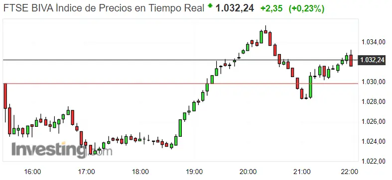 Gráfico del índice FTSE BIVA en un espacio de tiempo de siete días