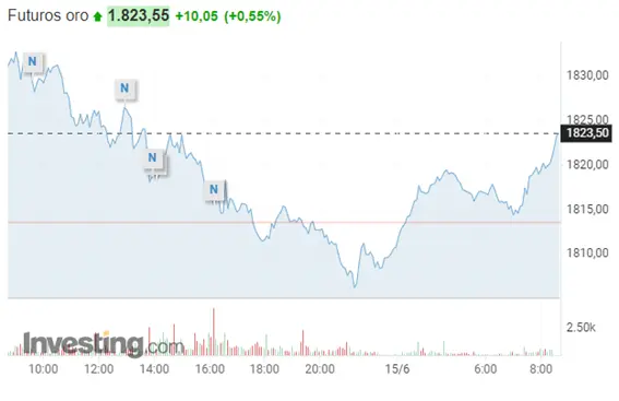 Gráficos actualizados de los Futuros del oro en las últimas 24 horas.