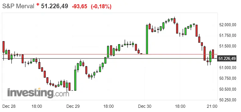 Como bien vemos en el gráfico de abajo, la Bolsa argentina junto al índice S&P Merval se mentiene en niveles que descienden hacia cotizaciones bajas, dejando el índice en rojo con unas cotizaciones de unos 51226.49 puntos, caracterizadas por un descenso de unos 93.65 puntos, es decir; del 0.18%. Buscando los niveles de soprote, entre los que oscila la posicion actual de S&P Merval, veremos el nivel de resistencia en unos 52187.33 puntos, mientras que el nivel de soporte se mantendrá en unos 50434.23 puntos. ¿Qué trayectoria nos podemos esperar para esta semana?