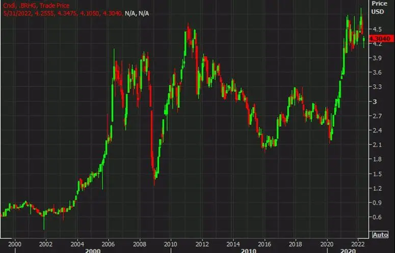 El cobre terminará este mes a la baja, pero aún se está consolidando cerca de la parte superior del rango a largo plazo. Hay algunos vientos en contra a corto plazo con China y la desaceleración del crecimiento global, pero los fundamentos a largo plazo en torno a la tecnología verde son un enorme viento de cola.
